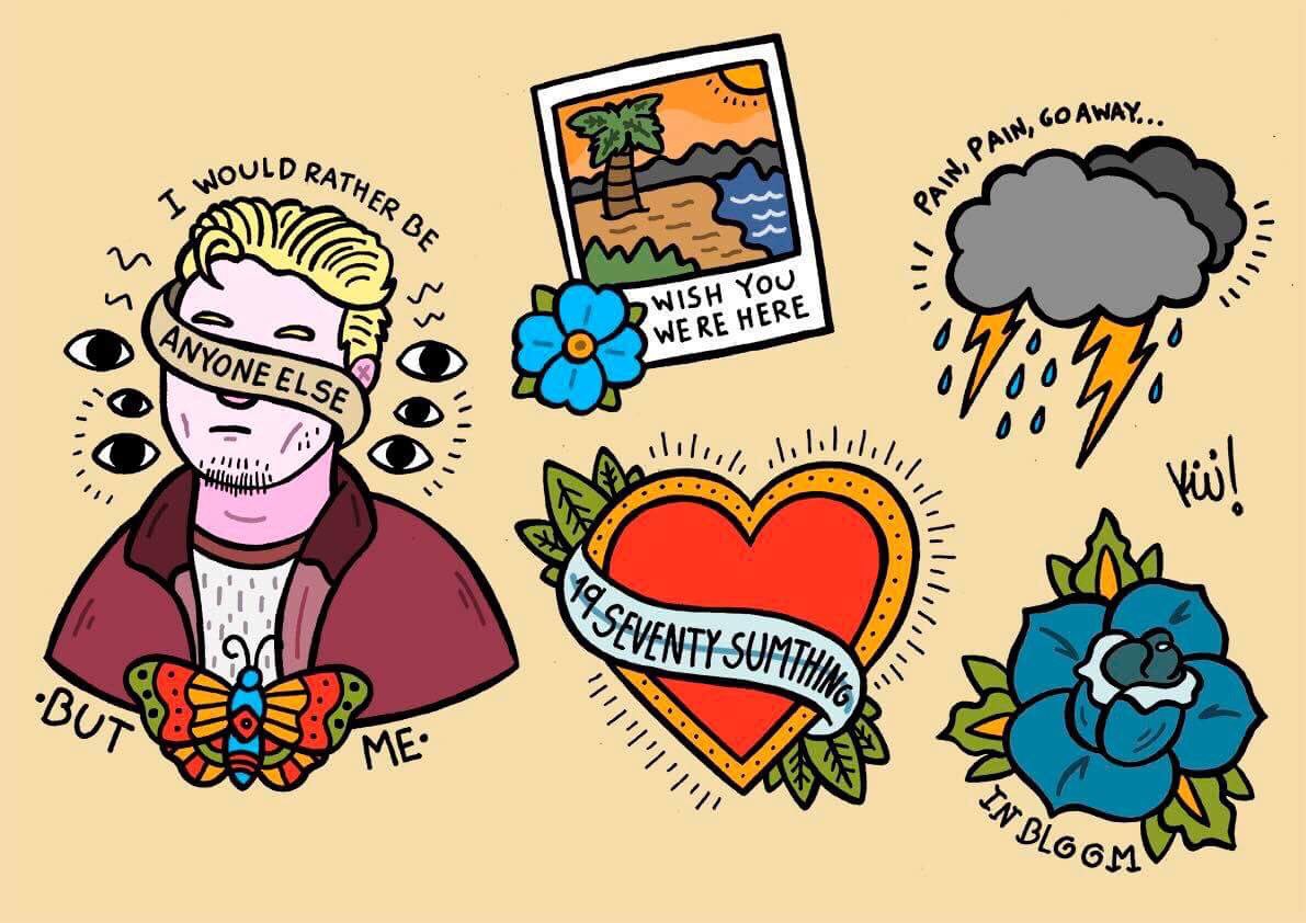 Neck Deep Tattoo Flash Sheet Art Artwork Drawing Tattoo Tattoodesign Fanart Bands Music Neckdeep Deep Tattoo Tattoo Flash Sheet Lyric Tattoos